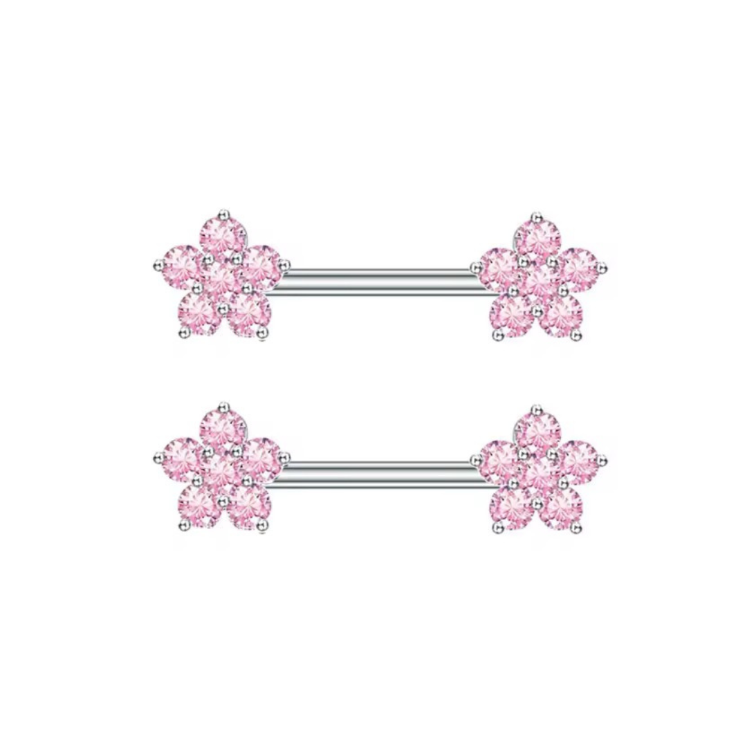 Pink Diamante Flower Nipple Bars