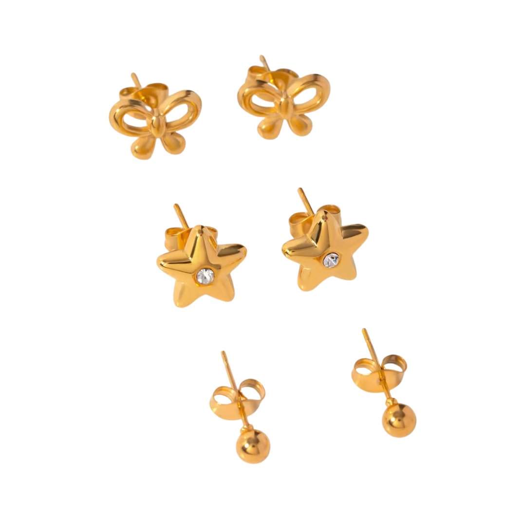 Introducing our Starlit Stud Earrings Set, featuring fun yet minimalistic designs. These earrings are perfect for everyday wear and stacking.