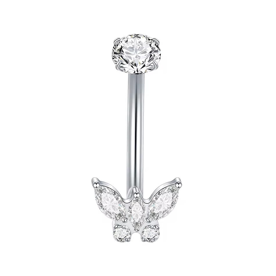 Silver Butterfly Titanium Belly Bar