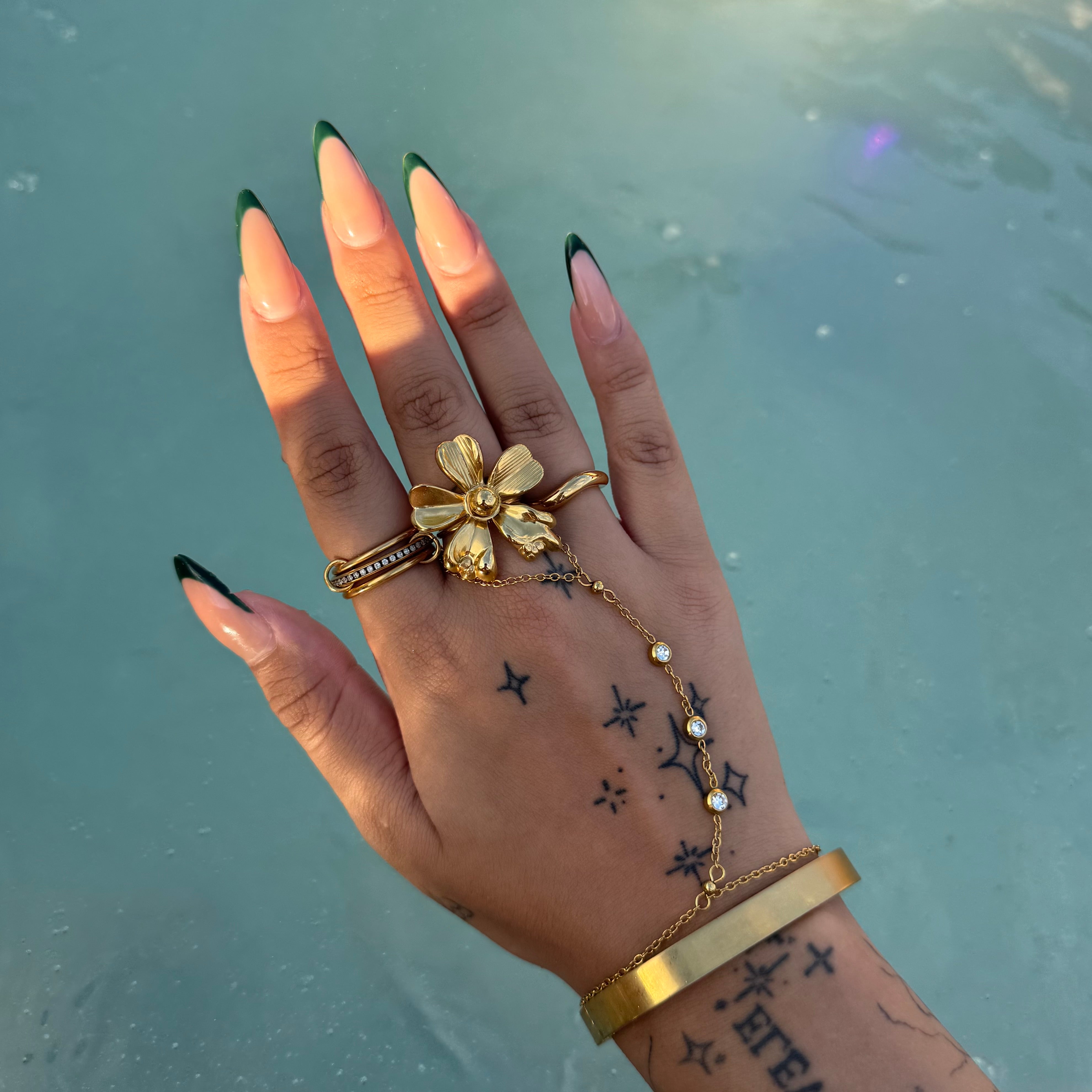 Introducing our Gold 'Fleur' Flower Ring, a beautiful stand-out piece. Crafted with a bold flower design, this is perfect for those who love to make a statement with their jewellery, it's sure to turn heads wherever you go 🌺