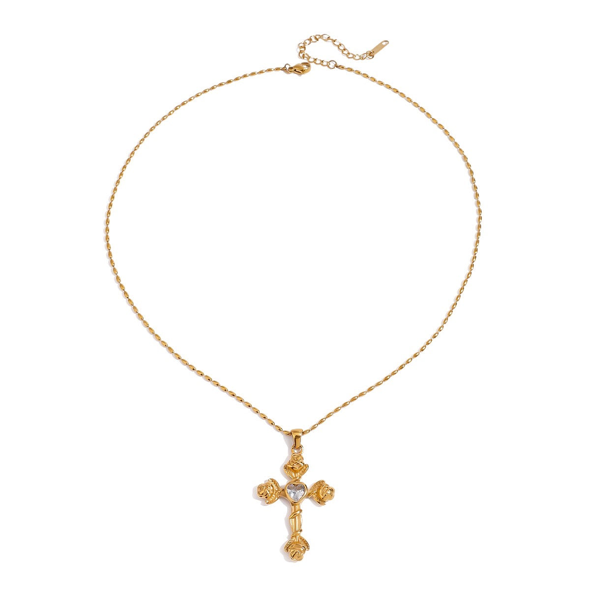 A delicate cross wrapped in rose details — subtle and made to stand out.🤍