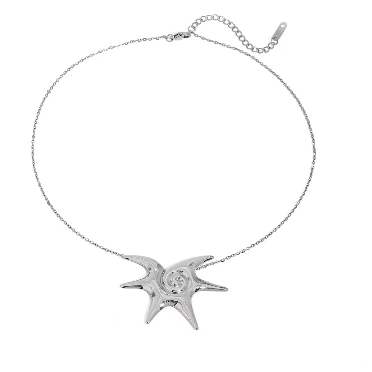 A cool spiral design with a starfish twist — this silver necklace brings just the right amount of detail. It's giving summer in a necklace.